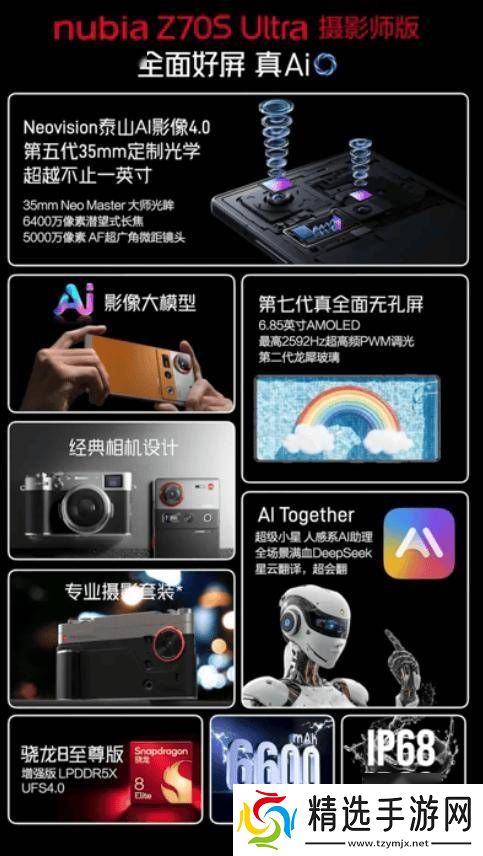Z70S Ultra摄影师版还搭载了升级后的超级小星与DeepSeek技术,为用户带来了全场景的体验升级。用户可以通过语音直接对话、联网搜索以及耳机唤醒等功能,轻松获取所需信息。同时,AI视觉技术也带来了万能问屏功能,用户只需对屏幕上的内容进行询问,即可获得相应的解答。