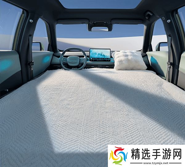 车内布局为五座设计,主副驾座椅支持大角度放倒,与后排座椅连接后可形成沙发床,方便乘客休息。前排座椅还具备电动调节、通风/加热/记忆/迎宾功能,进一步提升了乘坐舒适性。后排座椅拆分放倒后可形成平整的后备厢空间,后备厢地板下方还提供了大尺寸储物格,满足用户多样化的储物需求。