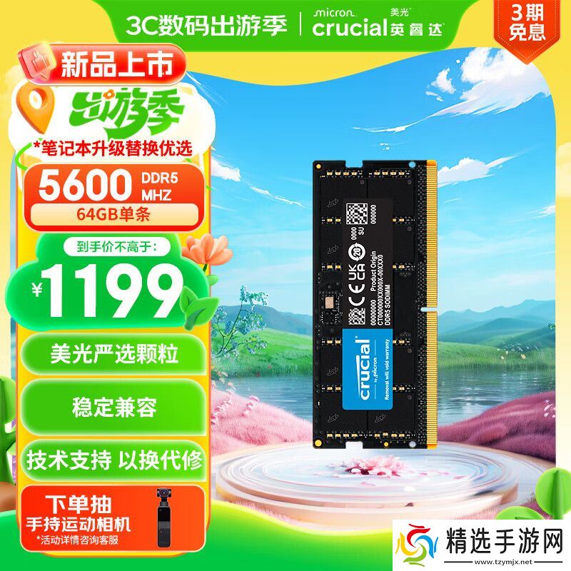 京东 Crucial 英睿达 64GB DDR5 5600 频率 笔记本内存条 美光(原镁光)原厂颗粒 AI 电脑配件 1199 元直达链接