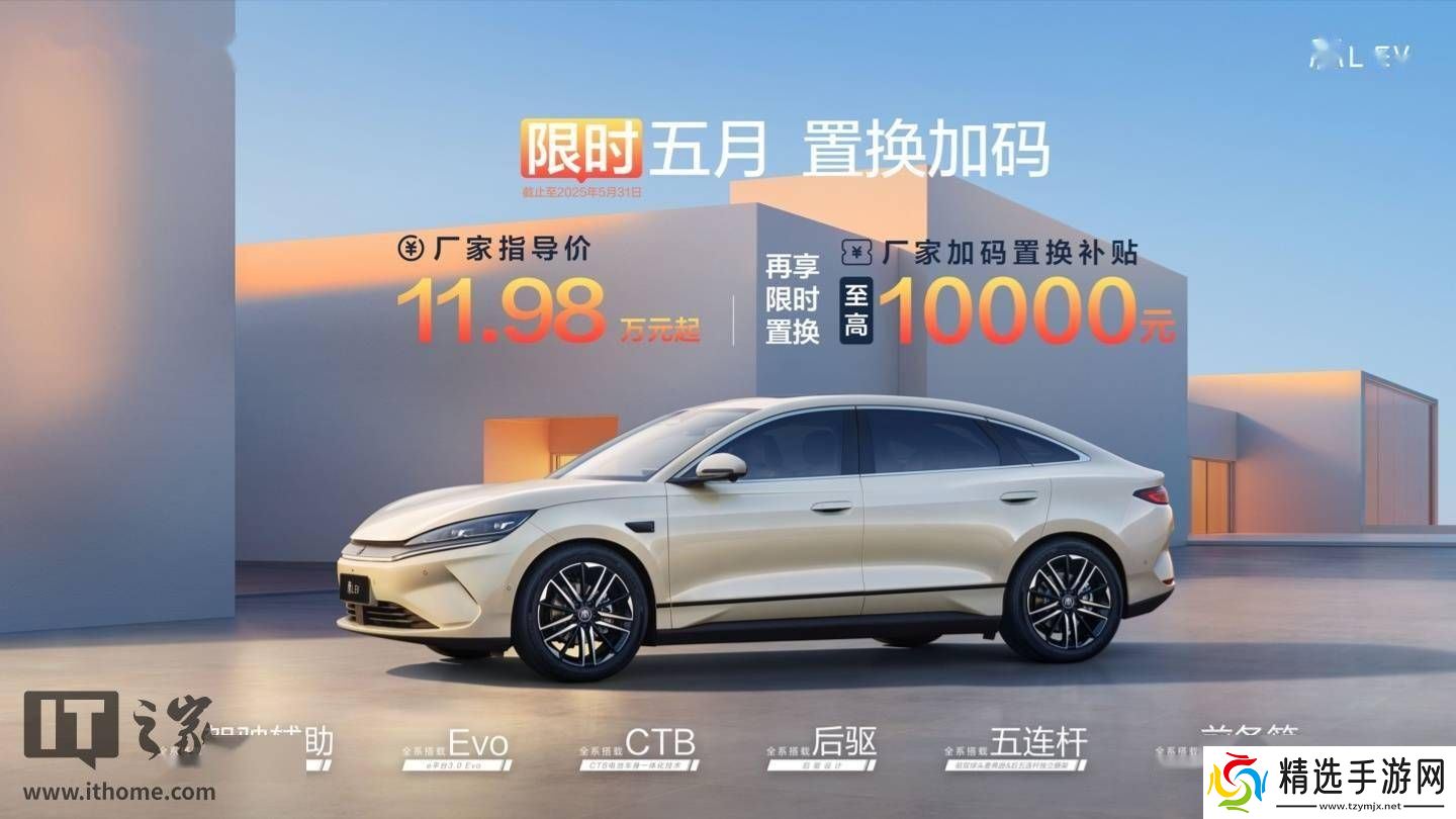 比亚迪秦L EV近期宣布了一项限时优惠活动,针对在5月31日之前购车的用户,提供高达1万元的厂家置换补贴。这款车型的官方指导价格区间为11.98万元至13.98万元,此举无疑为消费者提供了更具吸引力的购车选择。
