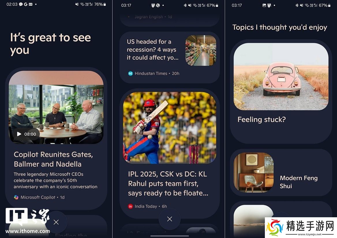 本站注意到,在 Copilot 的默认界面中,消息撰写区域是主要展示部分,而聊天记录则隐藏在汉堡菜单之后。用户可以通过点击“Copilot”图标按钮切换到“发现”(Discover)标签页。虽然“发现”功能本身并非新事物,但此前它仅限于在 Copilot 中“探索话题”和“Copilot 每日新闻”,后者是由微软策划的人工智能驱动的新闻播客,类似于 Perplexity AI 的模式。如今,随着 MSN 的整合,“发现”标签页中加入了来自 MSN 的新闻故事。