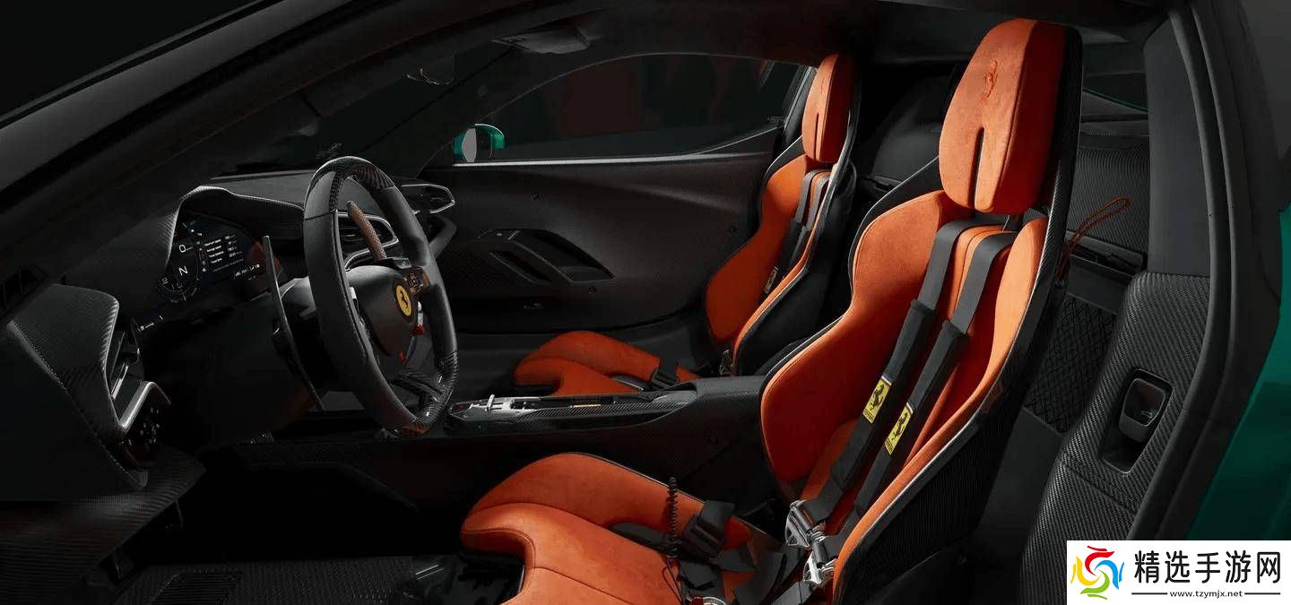 在动力方面,296 Speciale搭载了一台3升V6引擎,最大输出功率高达700马力,而电动系统则能额外提供180马力。为了减轻车身重量,法拉利在多个方面下了功夫:碳纤维轮毂、保险杠和发动机盖,以及采用钛材制造的悬架弹簧、排气系统和其他关键部件。通过去除多余金属,发动机缸体与曲轴箱的重量得以减轻,涡轮也减轻了1.2公斤。最终,296 Speciale硬顶版的重量仅为1410公斤,而Spider敞篷版也仅为1460公斤。