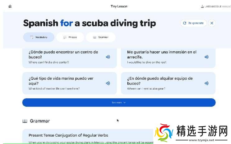 首先亮相的是“Tiny Lesson”项目,该项目能够根据用户设定的具体情境,自动生成相关的词汇、语法及实用表达方式。例如,当用户输入“护照丢失”这一场景时,系统便会迅速提供如“我丢失了我的护照”、“我需要报警”等即时可用的语句,帮助用户快速应对实际生活中的语言挑战。