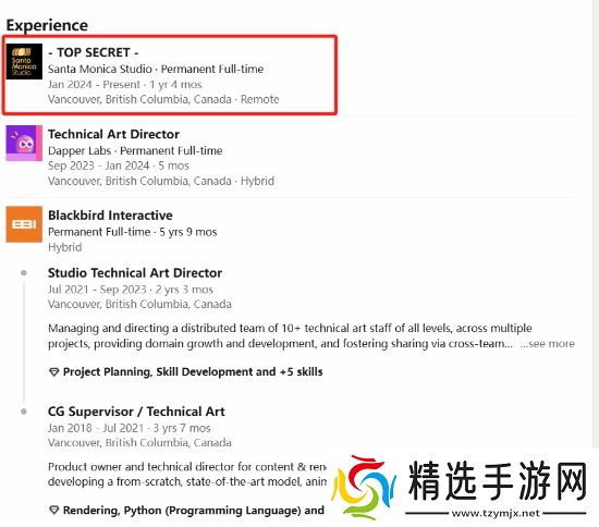 据吉姆·斯波托在职业社交平台上的个人资料显示,自2024年年初以来,他便成为了圣莫妮卡工作室的一员。而他目前正致力于的项目,则被标记为“最高机密”,这无疑增加了外界的好奇与期待。