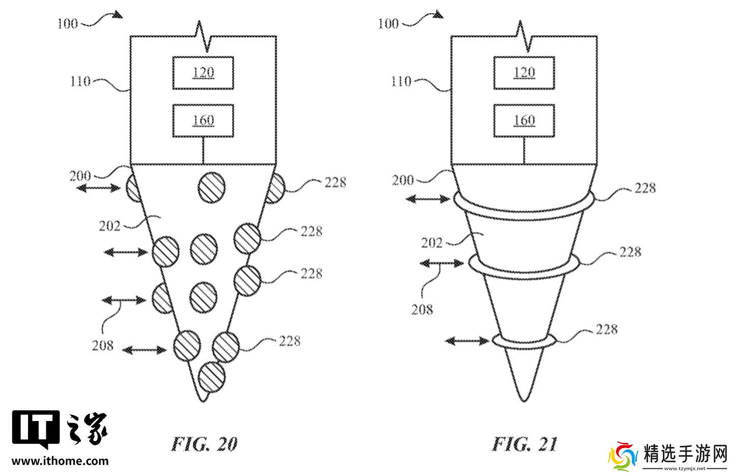 专利显示,新款 Apple Pencil 或支持动态调节笔尖的尺寸、形状、硬度等特性,以模拟不同书写工具(如钢笔、粉笔、画笔)的触感。本站附上相关图片如下: