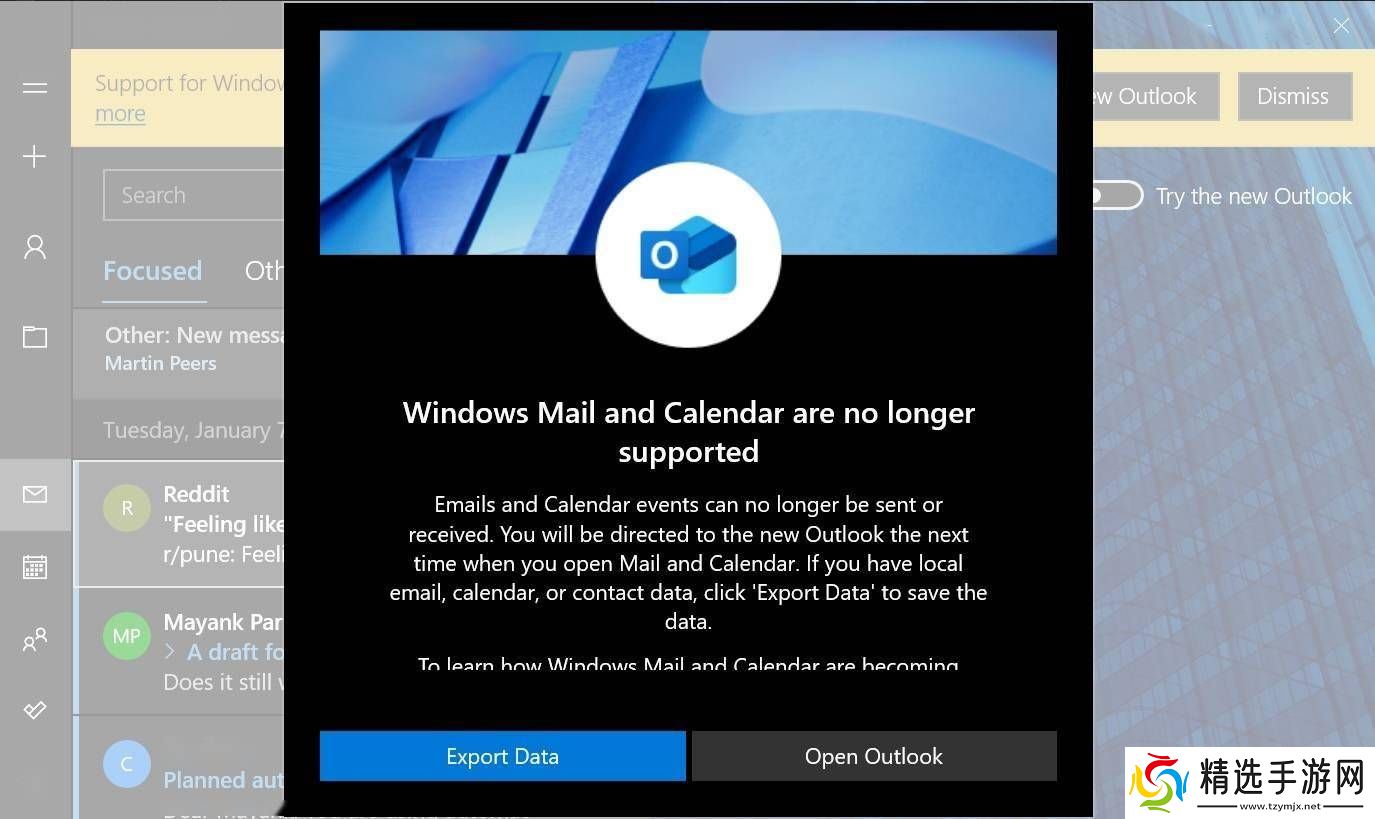 Windows Latest在测试中发现,当用户尝试打开Mail应用时,系统会弹出提示,建议用户导出数据并切换至新版Outlook。这一提示为用户提供了一个“Export Data”选项,方便他们将邮件、日历和联系人数据迁移至新版Outlook。整个迁移过程由系统自动引导完成,旨在帮助用户平稳过渡。