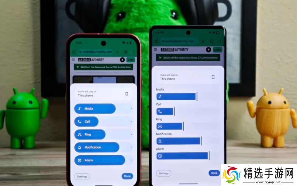 去年,随着 Android 15 的发布,谷歌推出了一款重新设计的可折叠音量面板,每个音频流都配备了药丸形滑块。相比之下,谷歌正在开发的新音量 UI 将那些粗滑块替换为更细的滑块,并带有明显的手柄。