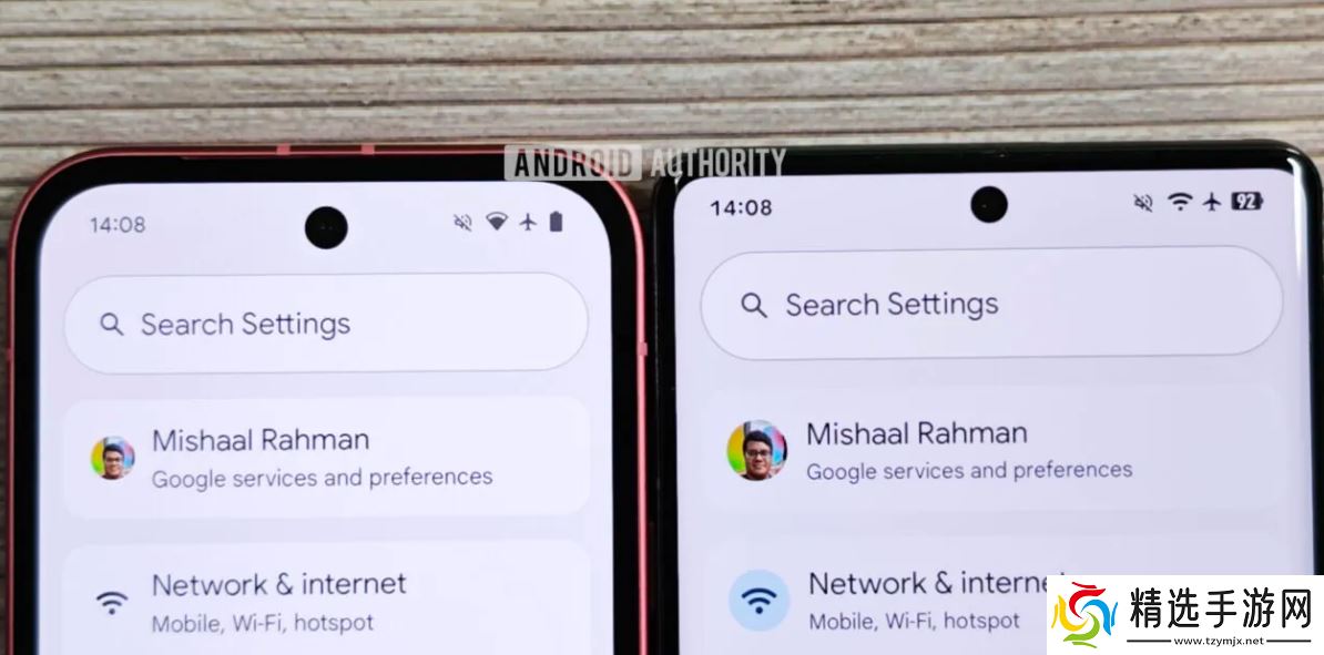 其中一个明显的视觉差异出现在状态栏中,谷歌调整了 Wi-Fi、移动数据、飞行模式和电池的图标。Wi-Fi 和移动数据图标现在是分段的,而 5G 和飞行模式图标则更加醒目。Android 的新电池图标也更加多彩,当设备充电时呈现绿色背景,当电量低时变为红色。