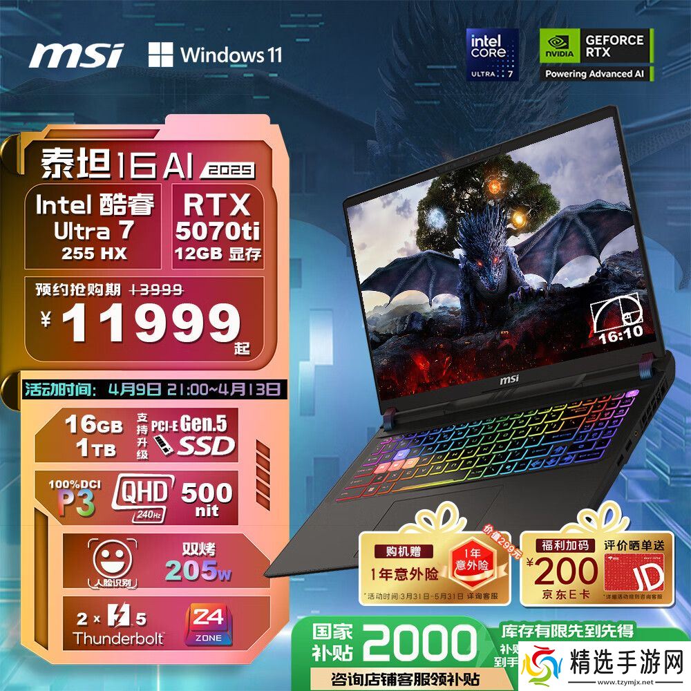 本站 4 月 5 日消息,微星泰坦 16 AI 2025 游戏本已于3 月 31 日开售,首发仅提供了酷睿 Ultra 9 275HX 处理器 + 满血版 175W 的RTX 5080 显卡版本,定价 14999 元,国补价 12999 元。