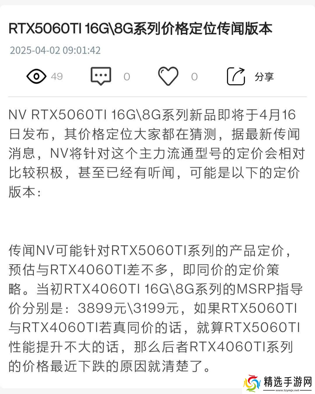 近期,据业内消息人士通过视博合聚平台透露,英伟达即将发布的GeForce RTX 5060 Ti系列显卡,在定价策略上或将延续其前代RTX 4060 Ti的步伐。这一消息引起了广泛关注。