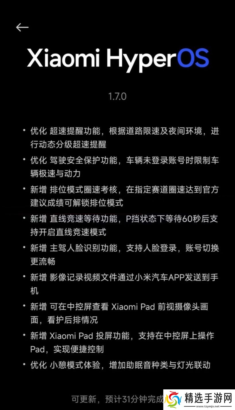 本站从更新日志获悉,灰度 OTA 更新 1.7.0 后,小米 SU7 Ultra 汽车新增排位模式圈速考核,在指定赛道圈速达到官方建议成绩可解锁排位模式。
