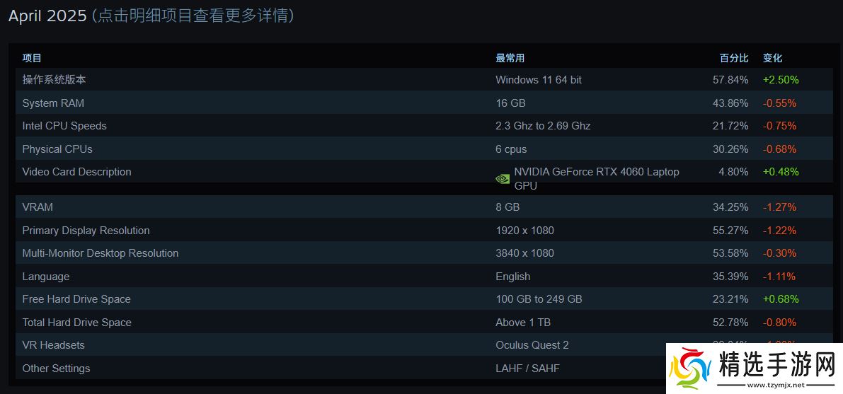 日前公布的 2025 年 4 月调查结果显示,RTX 4060 笔记本显卡份额登顶。本站汇总亮点信息如下: