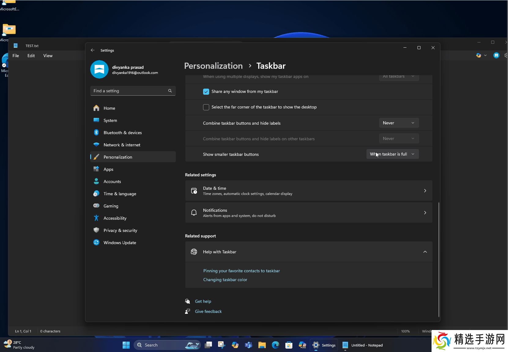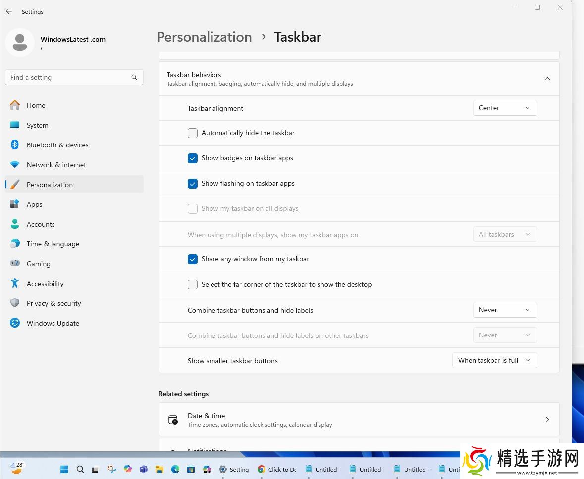 正如前文所述,用户可以在“任务栏行为”部分的“任务栏设置”中更改任务栏处理应用程序图标的方式,然后从“显示较小的任务栏按钮”中选择上述任一选项。