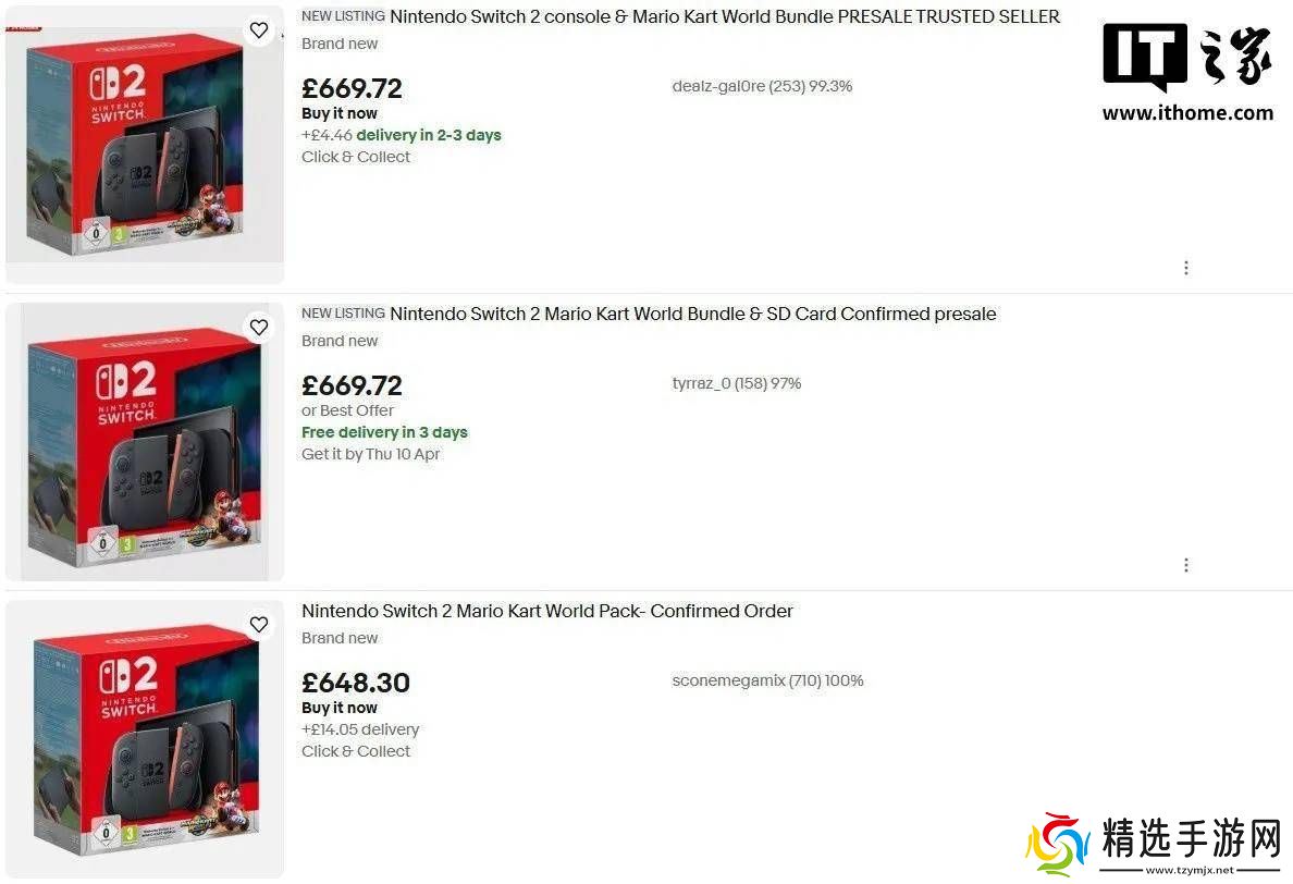 由于黄牛抢购,Switch 2在eBay等二手市场上的价格迅速飙升。部分商家标价甚至超过了600英镑,换算成人民币约为5614元,最高标价更是达到了669.72英镑,约合人民币6266元。令人惊讶的是,这些高价链接下方均显示“已售出”,说明有不少消费者愿意为Switch 2支付高昂的价格。