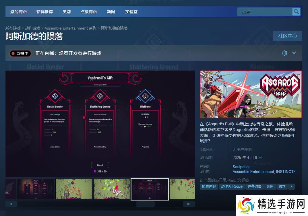 《阿斯加德的陨落》是由Soulpotion制作Assemble Entertainment发行的一款动作生存类Roguelite游戏。而这款游戏的下载网址就是购买平台的购买页面,比如Steam版就是在购买页面购买之后,点击页面中的马上开玩就可以开始下载了。