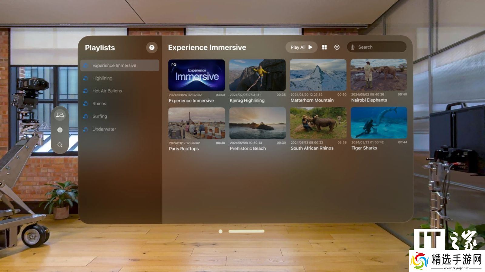 您可以创建播放列表,以便对您的沉浸式视频库中的 Apple Immersive Video 文件进行排序、整理和搜索。此外,该应用还支持与 Apple Vision Pro 用户共享沉浸式视频,文件类型简单易下载和导入。
