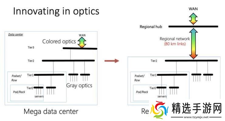 微软的数据中心设计就是一个例证。他们规划了自己的电信光纤网络,并推出新的ColorZ可插拔光收发器+DSP,以支持长距离数据传输,通过连接数据中心有效提高峰值集群性能。而谷歌则放弃了大型芯片,转而采用体积更小、成本更低、且具有深度互连的ASIC集群。这些努力都显著提高了系统的整体性能和效率。