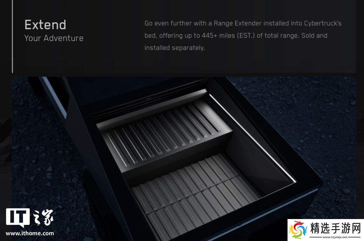 本站 4 月 8 日消息,特斯拉在去年7月宣布为旗下Cybetruck皮卡推出加装增程电池服务,相关电池包将安装在皮卡货箱中,约占据货箱33%体积,包含电池本体及安装在内的服务定价为1.6 万美元(IT 之家备注:当时约11.6万元人民币)。