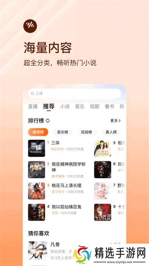 2.大量的小说,听听观众!都市酷炫写作、悬疑恐怖、浪漫穿越、奇幻修炼、武侠江湖