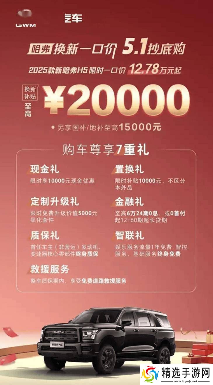 近日,哈弗品牌宣布了一项限时购车优惠政策,旨在吸引更多消费者。根据该政策,从即日起至5月31日,消费者购买哈弗车型可享受一口价优惠,起始价格低至12.78万元。还有以旧换新补贴,最高可达2万元,以及地方补贴政策,最高补贴额为1.5万元。
