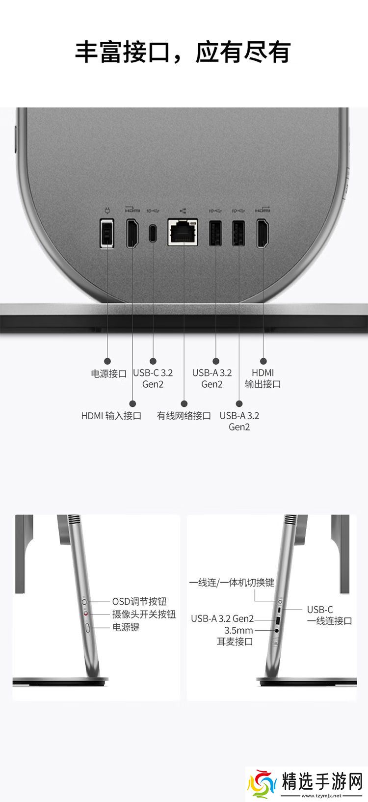 它还配备了 2.5K 视频级 IR 摄像头,支持人脸识别;自带键鼠套装;提供了多种接口,支持 USB 一线连,包括屏幕输出、音响、IR 摄像头、键盘、鼠标、反向充电等。