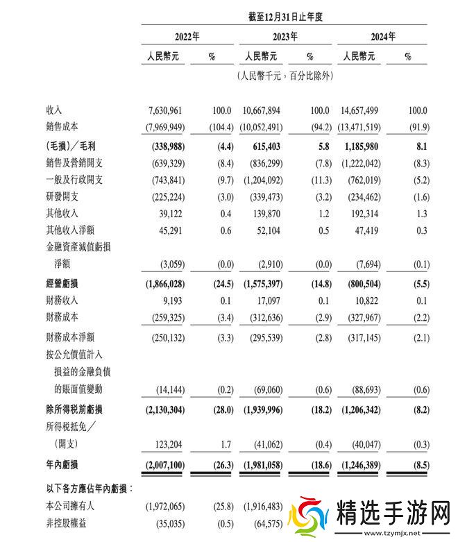 据招股书,2022 年-2024 年,曹操出行实现收入分别为 76.31 亿元、106.68 亿元、146.57 亿元;年内亏损分别为 20.07 亿元、19.81 亿元、12.46 亿元。可见,2024 年其收入同比增长 37.4%。