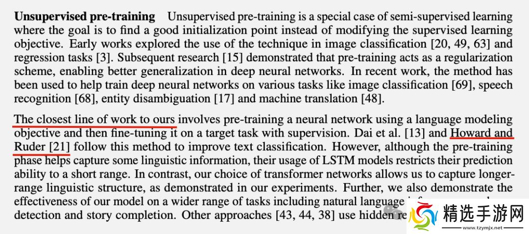 GPT-1 论文原文中,也指出“最接近我们工作的”就是 ULMFiT 与谷歌的半监督序列学习(Semi-supervised Sequence Learning)了。