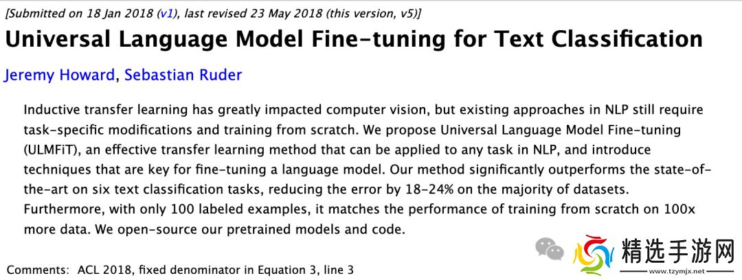 首先来介绍一下 ULMFiT 这篇论文,入选 ACL 2018: