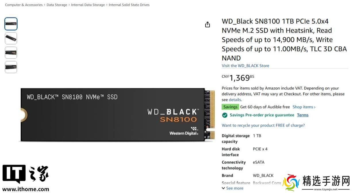 根据亚马逊平台的信息,WD Black SN8100 1TB版本已经开启预售,标价189.95美元(按当前汇率换算,约合1370元人民币)。该版本配备有散热器,预计将于5月30日正式发货。而4TB版本则还处于预订未开放状态,具体发售时间尚未公布。