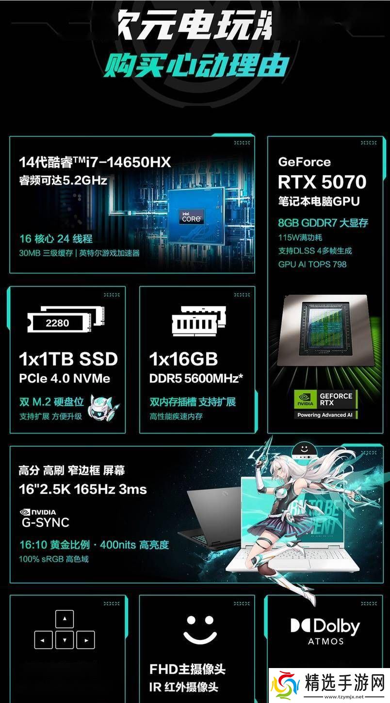 天选6 Pro系列在设计上采用了“灵动轻机甲”风格,以全新的不对称斜切设计,彰显个性与科技感。全系标配的RTX 5070显卡,具备8GB显存,并支持DLSS 4多帧生成技术,为玩家提供流畅的游戏体验与高效的图形处理能力。同时,该系列笔记本还支持“双显三模”显卡热切换,用户无需关机即可轻松切换独显直连、混合模式、核显模式及自动调节模式,满足不同场景下的使用需求。