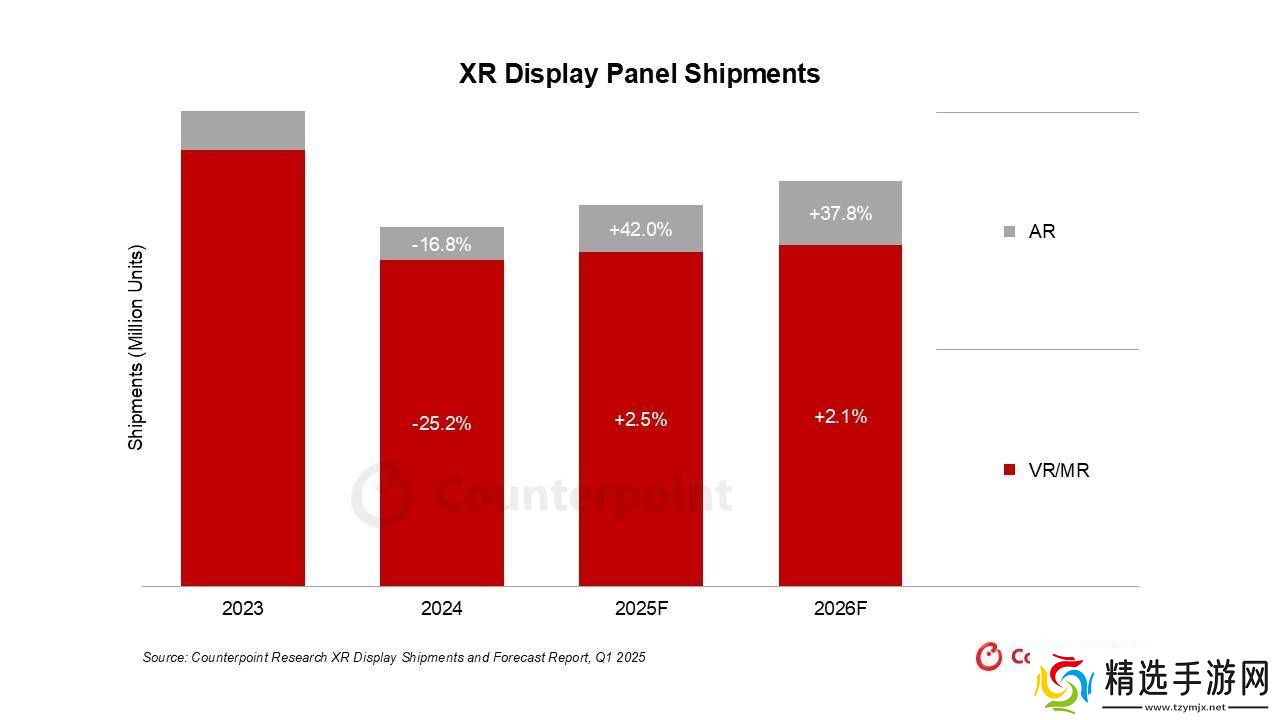 展望未来,Counterpoint Research预计市场复苏将在2026年延续。届时,AR显示屏出货量有望再增38%,而VR显示屏出货量则预计将实现小幅增长2.1%。这一预测进一步证实了AR技术在未来XR市场中的重要地位,也为相关企业和投资者提供了宝贵的市场洞察和决策依据。