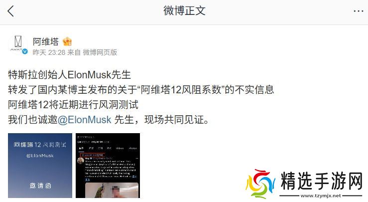 本站 5 月 7 日消息,阿维塔科技官方微博昨日晚发文:“特斯拉创始人 ElonMusk 先生(特斯拉 CEO Elon Musk 伊隆・马斯克)转发了国内某博主发布的关于“阿维塔 12 风阻系数”的不实信息,阿维塔 12 将近期进行风洞测试,我们也诚邀 ElonMusk 先生,现场共同见证。”