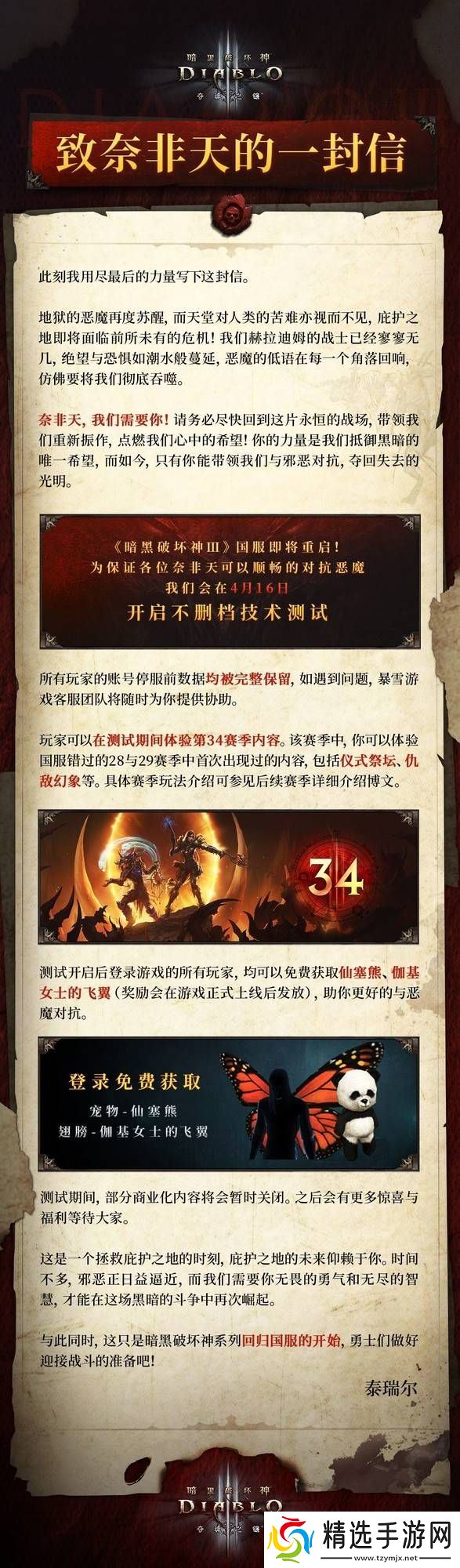 据悉,为了确保玩家们在重启后的国服中能够畅享游戏,不受任何阻碍地与恶魔展开激战,官方精心筹备了此次不删档技术测试。测试旨在全面检验服务器的稳定性与游戏的流畅度,为正式开服做好充分准备。
