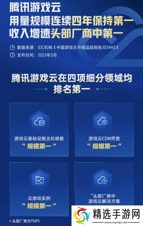 近日,国际知名研究机构IDC揭晓了《中国游戏云市场跟踪研究,2024H2》报告的关键数据,揭示了腾讯云在游戏云领域的卓越表现。报告显示,腾讯云在2024年下半年中国游戏云市场规模中独占鳌头,其用量规模连续四年稳居榜首,收入增速亦连续两年领跑行业。