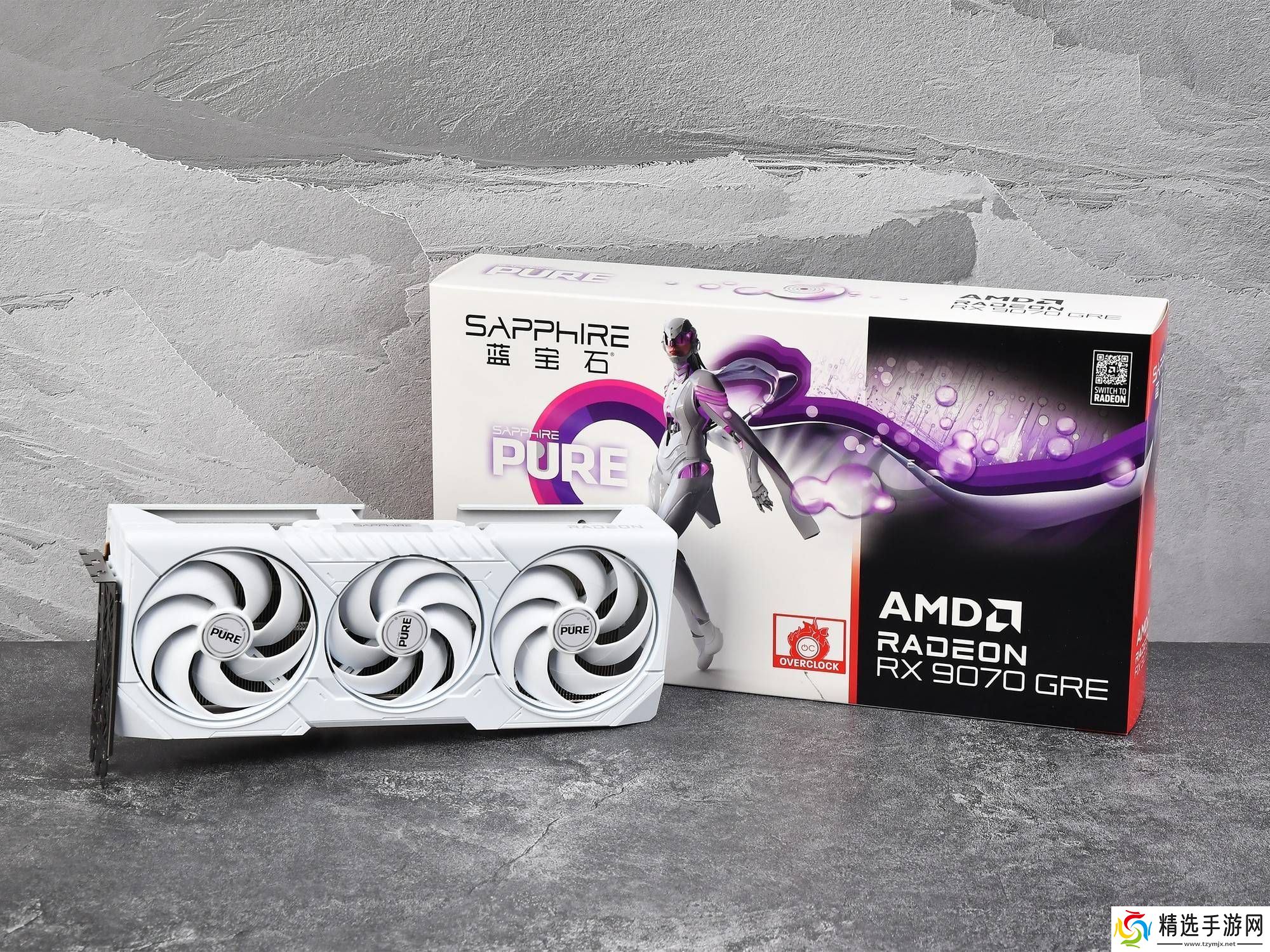 蓝宝石PURE 极地 RX 9070 GRE 12G D6 OC显卡以其纯白的外观设计脱颖而出,整体设计简洁而不失高雅。外包装以极地系列的机器人作为主视觉,主色调为纯白与黑色,辅以紫色点缀,风格怀旧而独特。