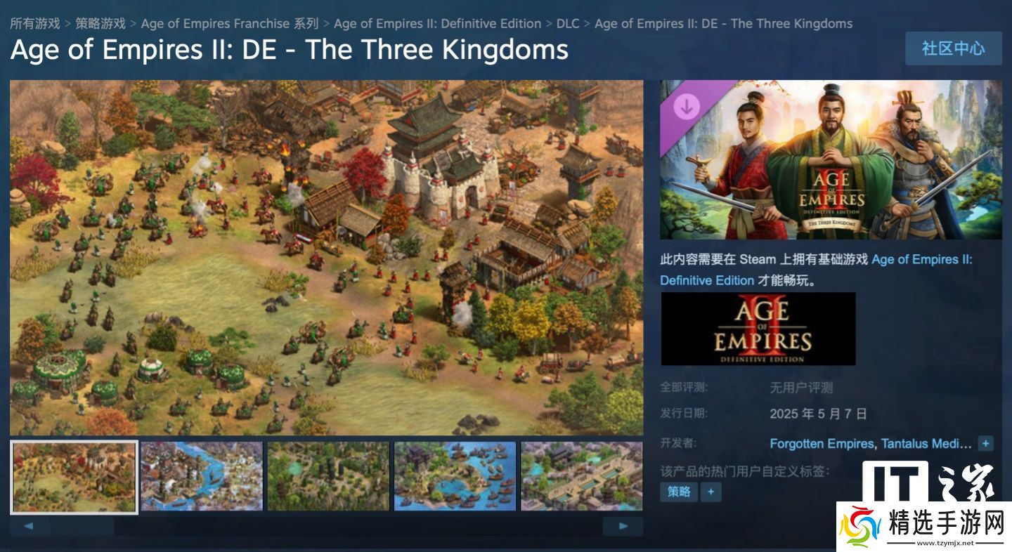 本站 4 月 11 日消息,微软宣布为旗下《帝国时代2:决定版 (Age of Empires II:Definitive Edition)》新增一款《三国(The Three Kingdoms)》DLC,这款DLC将于5月7日发售,主要为游戏加入三国时期故事线,首发8.5折后到手价83.3元,本站附 DLC商品页(点此访问)。