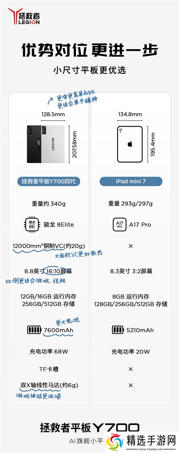 联想官方还晒出了Y700第四代与iPad mini 7的对比图,显示Y700在性能、散热、屏幕、尺寸、电池、快充等方面均占据优势,堪称最强游戏小钢炮,无疑为即将到来的市场竞争注入了新的活力。