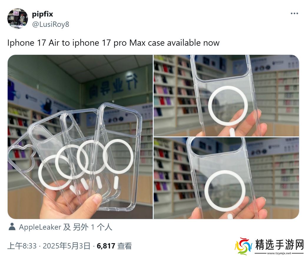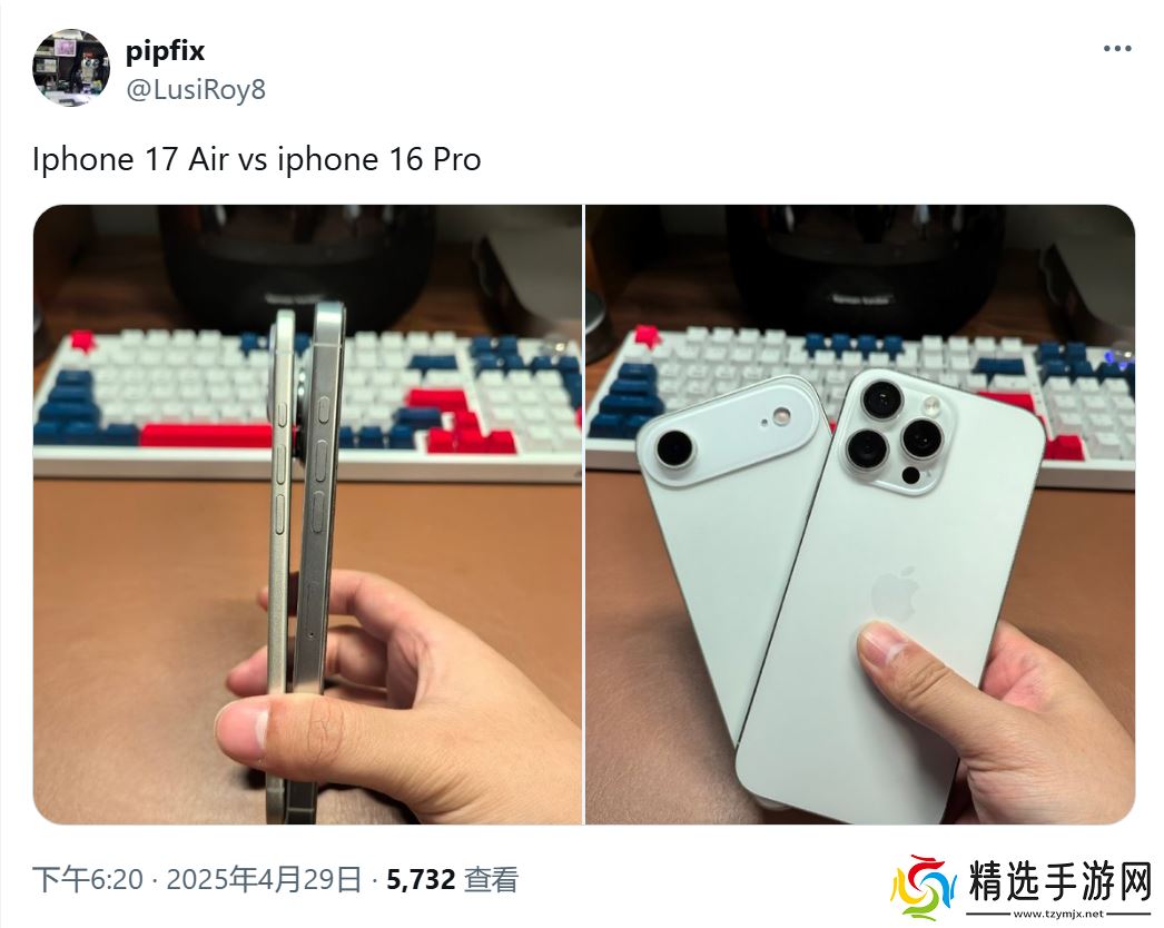 本站 5 月 9 日消息,消息源 @LusiRoy8 今天(5 月 9 日)在 X 平台发布推文,分享了一段视频,展示了苹果 iPhone 17 Air 戴上手机壳后的效果,依然要比 iPhone 17 Pro Max(机模)更薄。