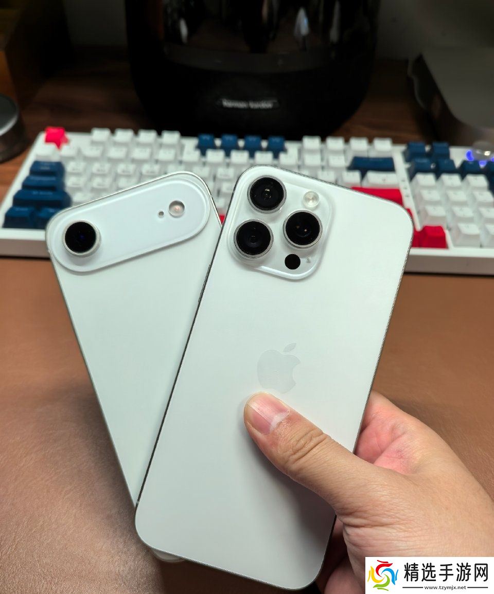 从机模的戴壳效果来看,iPhone 17 Air 依然比未戴壳的 iPhone 17 Pro Max 显得纤薄,这只是基于未发布机型模型的推测,真实效果仍待官方确认。