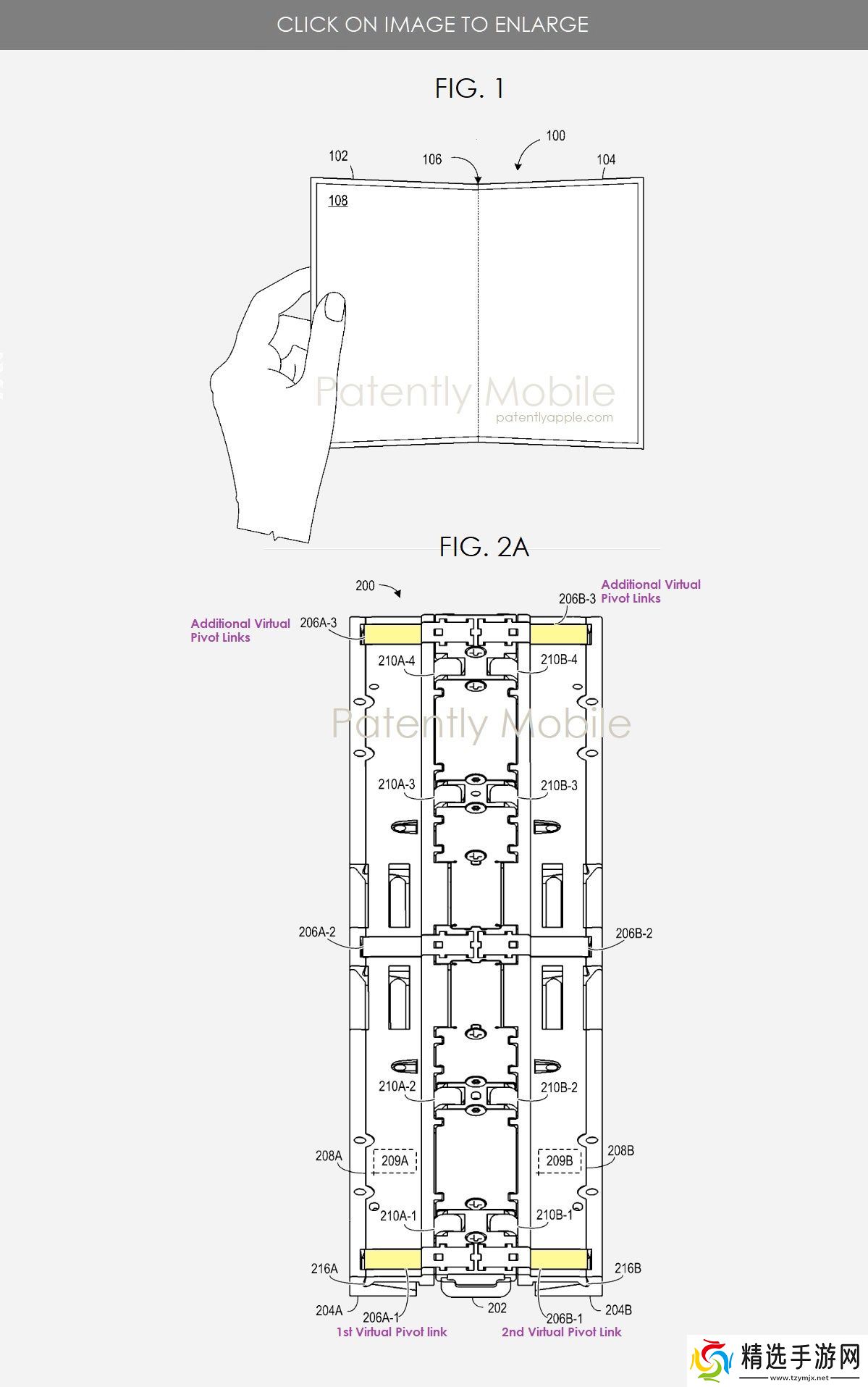该专利的独特设计之处在于,虚拟枢轴链接通过虚拟枢轴(virtual pivot)与铰链脊活动连接,显示支撑则以滑动方式附着于链接之上。