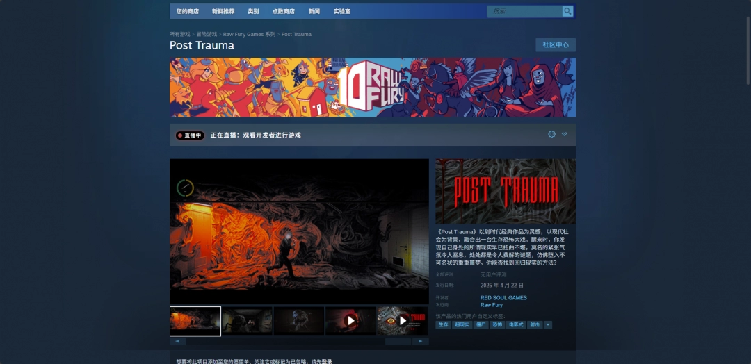 《Post Trauma》是一款由ReD SOUL GAMES开发、Raw Fury发行的恐怖生存游戏,而这款游戏的官网地址就是Steam平台的购买页面,进入到这个游戏的购买页面基本上就能知道所有这款游戏的信息。