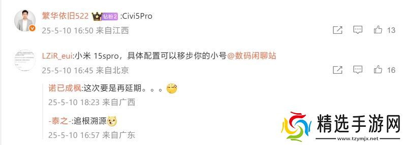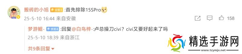 这则微博下方,网友们的讨论多涉及到 15S Pro、Civi 5 Pro 两款机型。