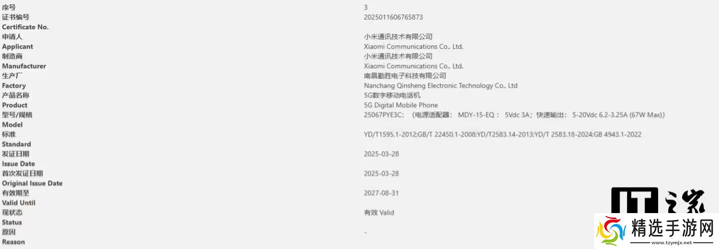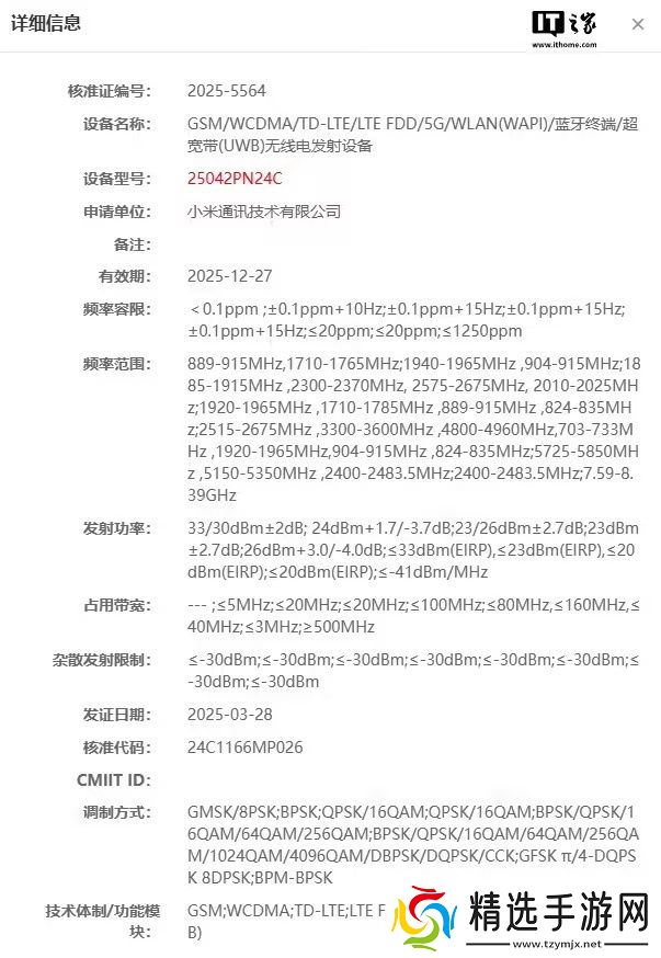 今年3月28日一款型号为25042PN24C的小米新机通过了工信部无线电核准,支持超宽带(UWB)无线电发射。这款新机今年1月还通过3C认证,支持90W Max快充,该机有望为小米15S Pro。