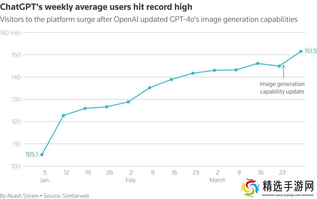 ChatGPT 的爆红与新推出的 4o 图像生成功能密切相关。该功能支持用户生成宫崎骏吉卜力风格的艺术图像,迅速在社交媒体引发热潮。