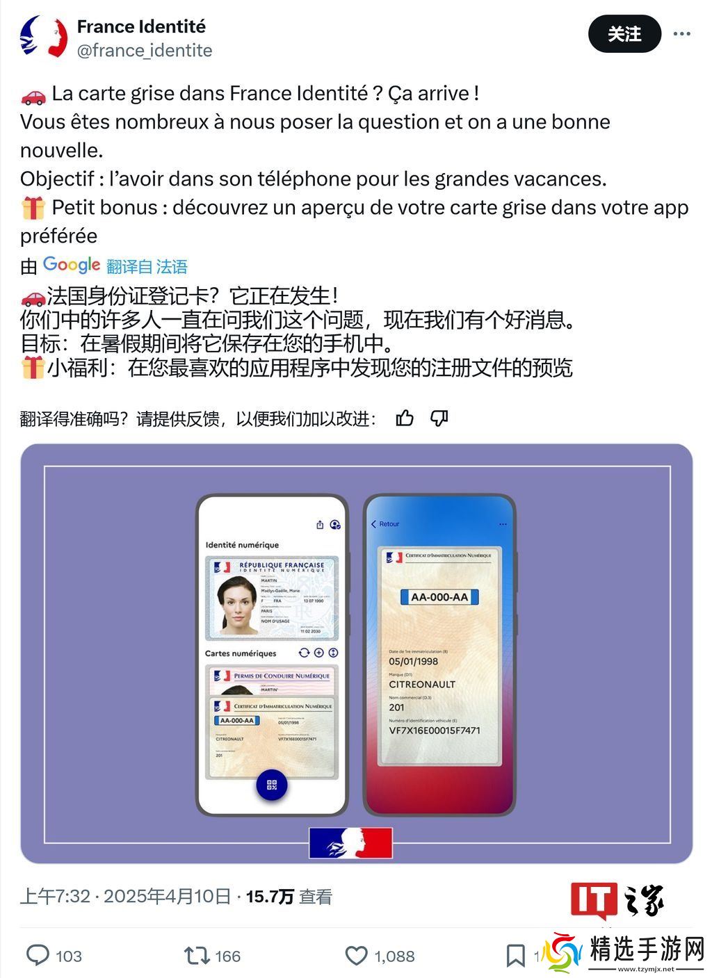 France Identité 官方 X 账号于 4 月 10 日发布推文,确认即将在智能手机上启动数字身份证计划,目标在 2025 年暑假期间推出。