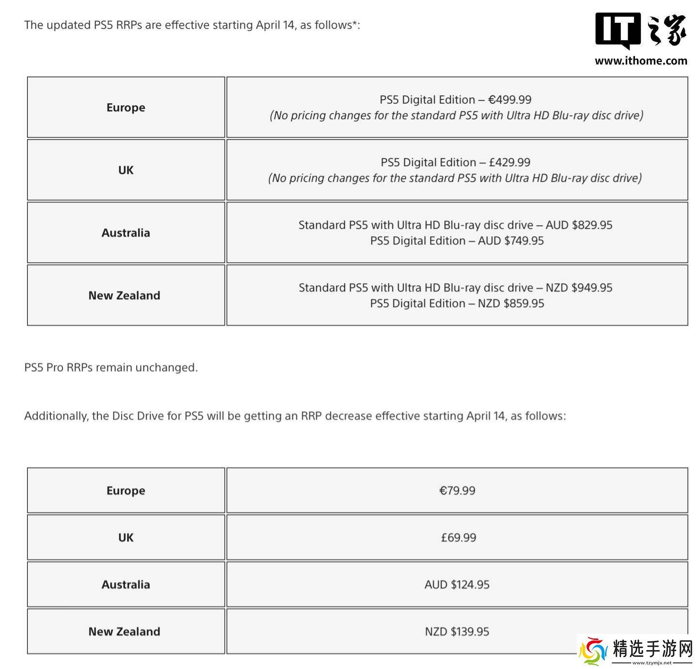 值得注意的是,尽管PS5系列的价格普遍上涨,但PS5 Pro并未包含在此次调价范围内。为了缓解价格上涨可能带来的市场冲击,索尼公司同时宣布降低了PS5光驱的单独售价,在英国降至69.99英镑,欧洲为79.99欧元,澳大利亚为124.95澳元,新西兰则为139.95新西兰元。