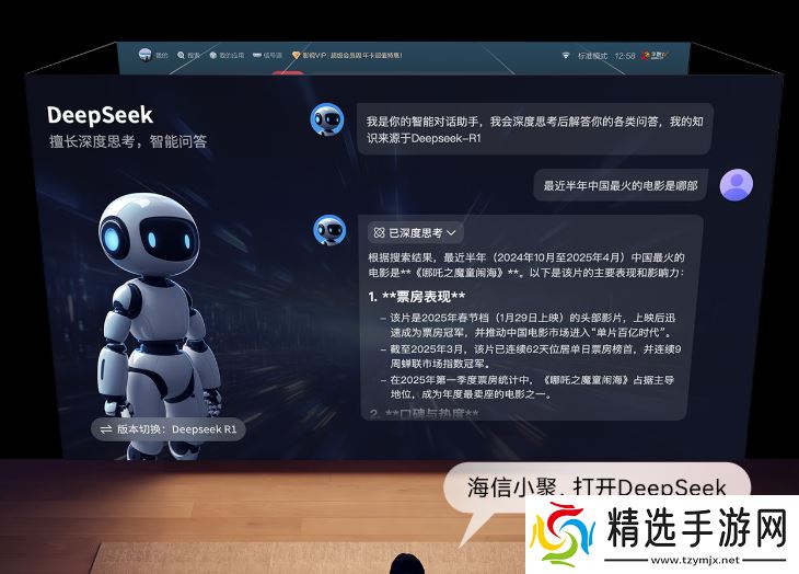 此外,该产品还搭载星海大模型DeepSeek“深度共生智能体”,提供 AI 观影、AI 教育、AI 体育,支持 AI 游戏妙控台,Switch、Xbox、PS 秒适配。该产品配备 3GB+64GB 存储空间、满血 HDMI 2.1 x 2、Wi-Fi 6、USB 3.0,行业首发智能天线阵列。