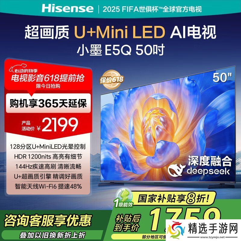 京东海信电视 E5Q2199 元起国补价 1759 元起直达链接本站附售价如下(国补 8 折):