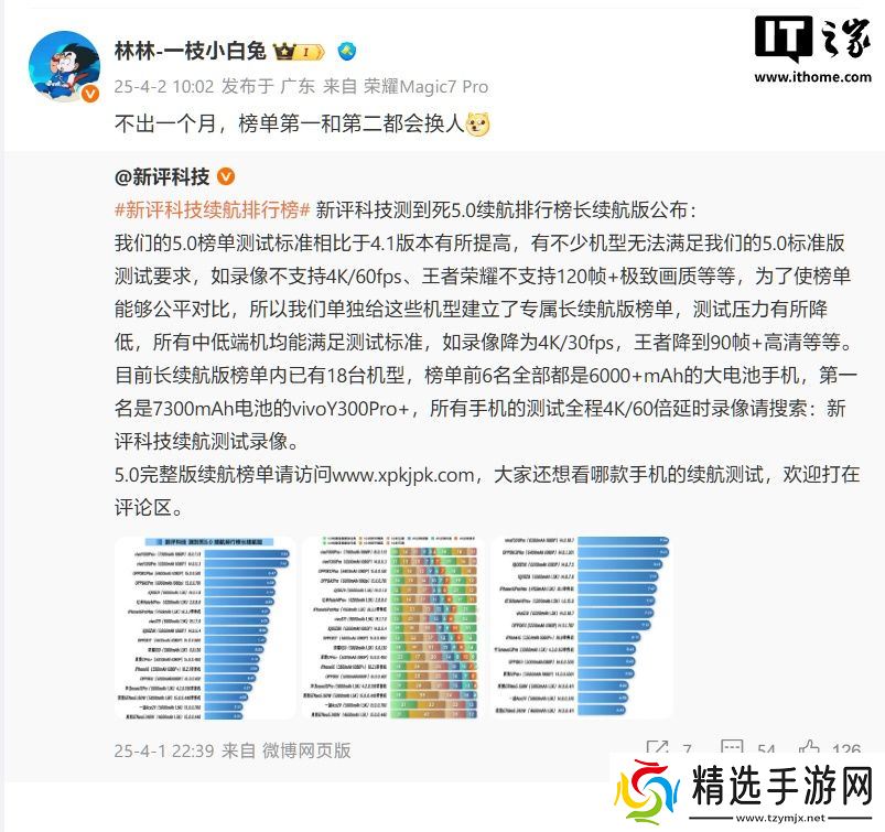 据本站此前报道,定位“轻户外手机”的新品荣耀 Power 将于4 月 15 日 19 时 30 分正式发布。荣耀产品经理 @林林-一枝小白兔 本月也表示,(这款手机问世后)不出一个月,续航榜单第一和第二“都会换人”,同时透露“性能向有性能向的产品”。