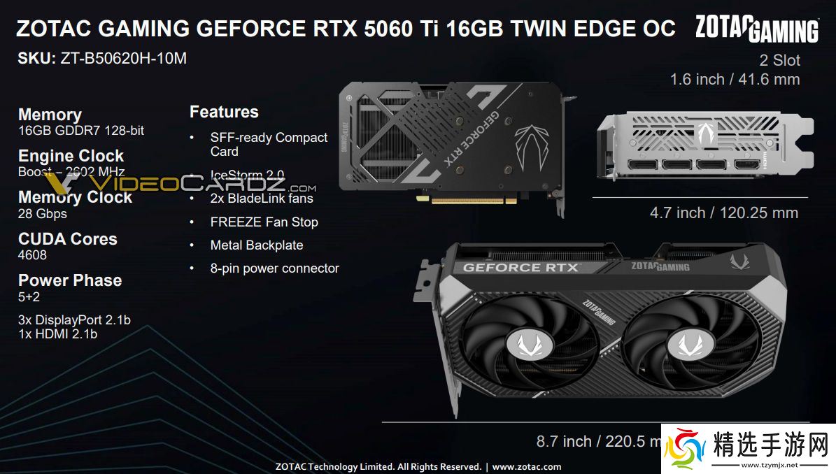 索泰 GEFORCE RTX 5060 Ti 16GB TWIN EDGE OCZT-B50620H-10M:2602 MHz